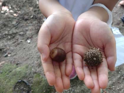 見つけたどんぐりを、先生たちにたくさん見せてくれました。