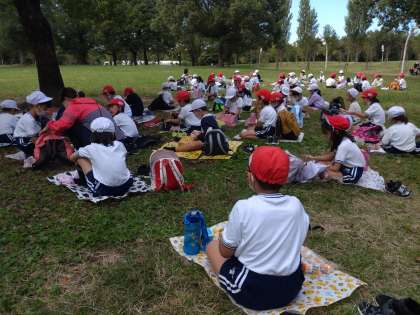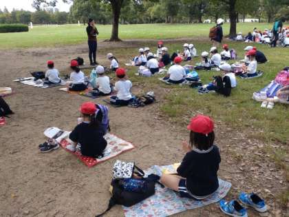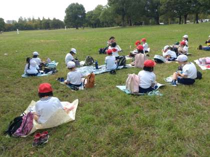 嬉しそうにシートを広げて、お弁当を出す子どもたち!
