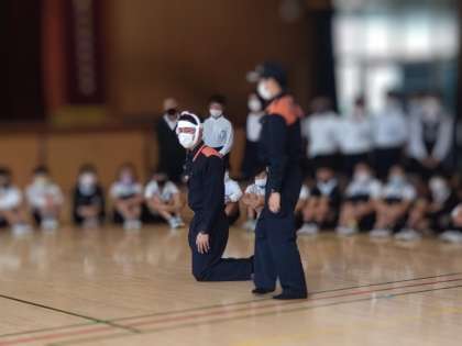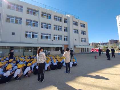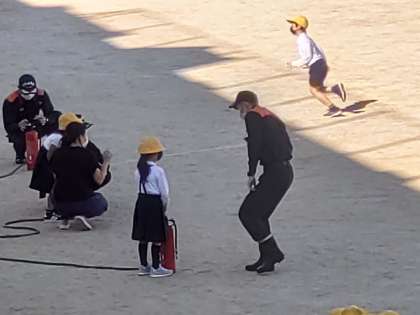 1〜4年生は水消火器訓練、5・6年生は救命訓練を行いました。