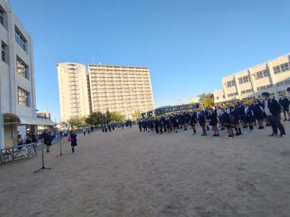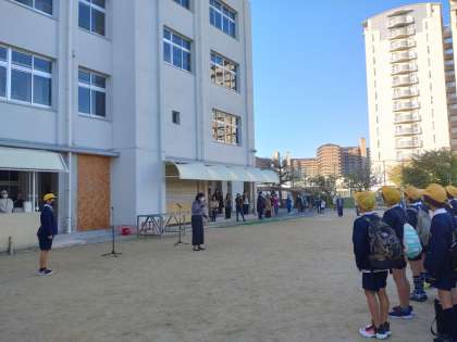 出発式では、校長先生から「みんなが楽しめる修学旅行にしましょう」とお話がありました。