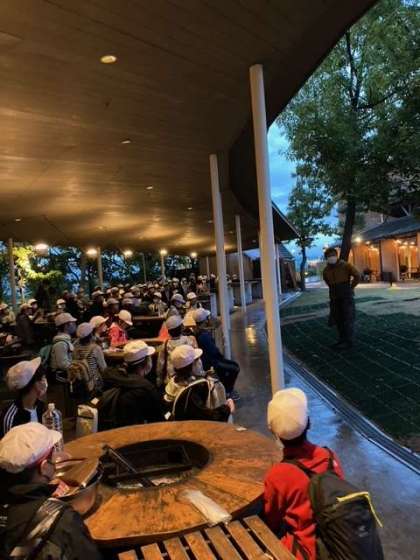 宿舎の方からの説明を聞き、今から班で協力して、カレーを作ります。