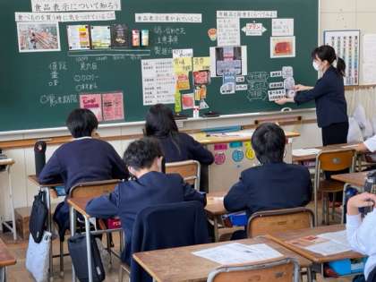 栄養士の先生をお招きし、食品表示について学習をしました。食品表示の内容や意味を知ったり、普段の買い物のときに気をつけることを学んだりしました。