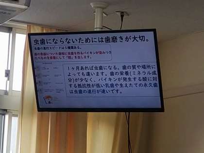 今日の児童朝会では、テレビ放送で、保健委員会の児童が「歯と健康」をテーマに発表を行いました。
