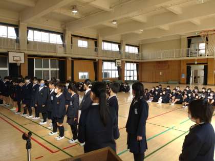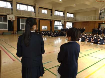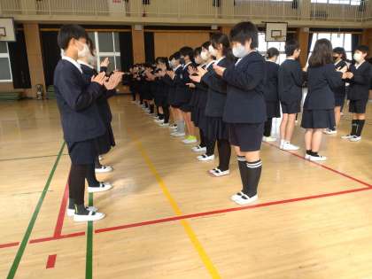 代表委員会の児童の進行で、呼びかけと合唱のリハーサルをしたり、並び方を確かめたり、花道を作ったりしました。