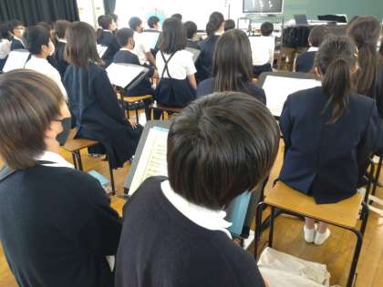 写真は、6年生の音楽の授業の様子です。