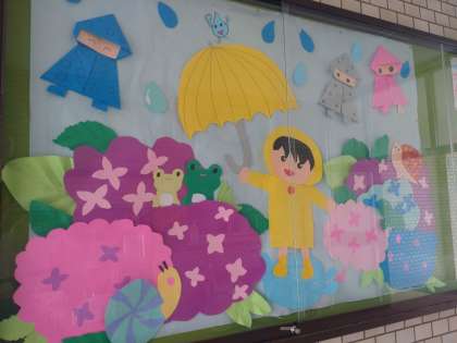 学校の玄関には、掲示委員会の児童が力を合わせて作った作品が掲示されています!