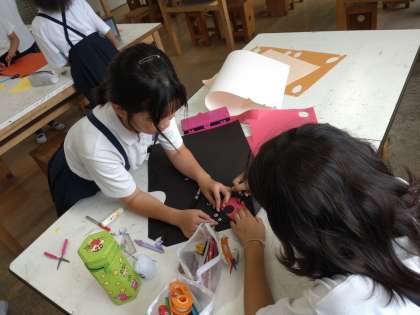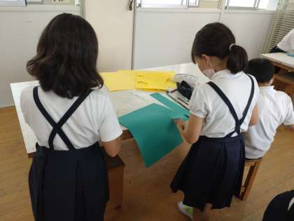 端末で画像を検索して、季節にふさわしいもの探し、自分たちで工夫して作っていました!