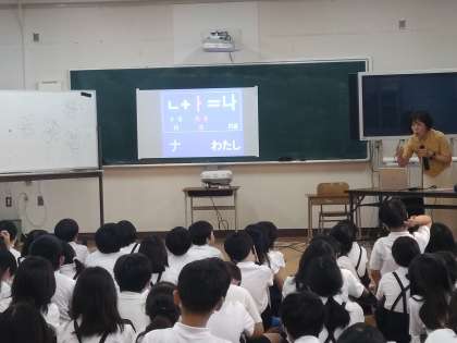 ソンセンニムが来校され、韓国・朝鮮の文化について子どもたちに教えてくださいました。