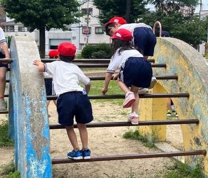 遊具で楽しく遊んだりしました??