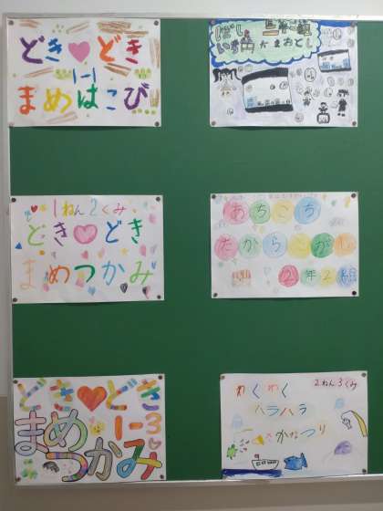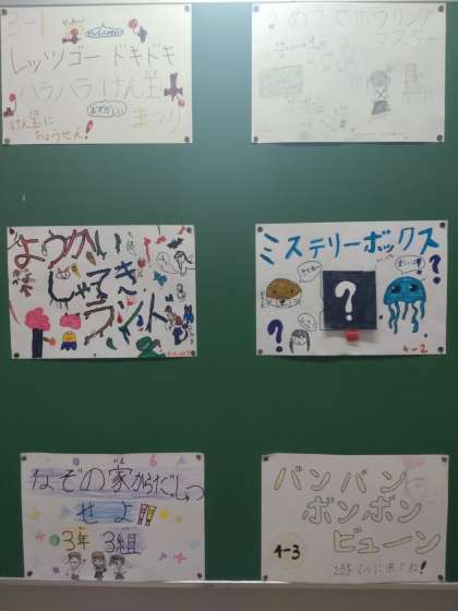 児童会の掲示板には、色とりどりの楽しいポスターが貼られています!