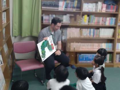 火曜日のお昼休みは、C-NETの先生による英語の絵本読み聞かせがあります!