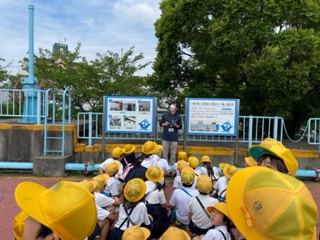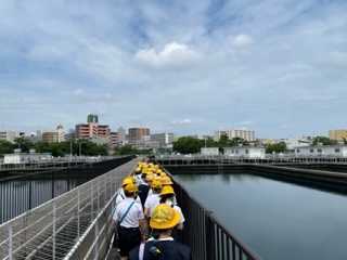 社会見学で、柴島浄水場に行きました。淀川の水が学校や家で使ったり飲んだりする水になるために、どのようなことをするのか見学しました。