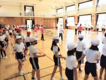 5年生の子ども達は、初めは民謡のリズムに乗るのに慣れない様子でしたが、地域の方の踊りを見ながら、めきめきと上達していました!
