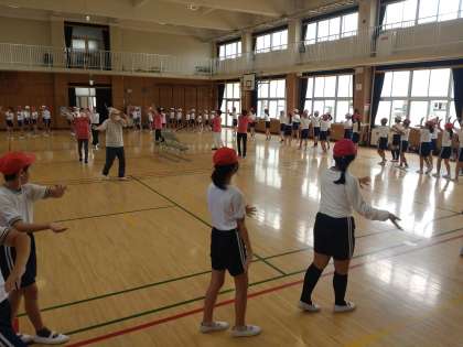 4年生の児童が、地域の皆さんに放出音頭を教えて頂きました。