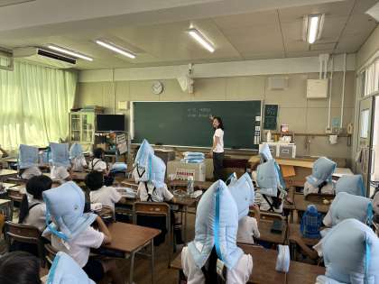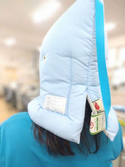 PTAから防災ずきんを児童ひとり一人に頂きました。