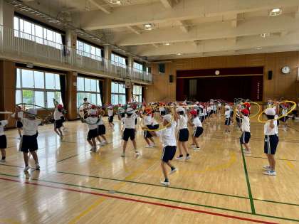運動会のダンスにフラフープを使うということで、フラフープを使った動きを練習しました!