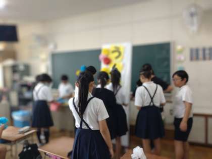 掲示委員会では、運動会の看板の飾りつけをしました。