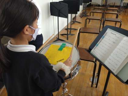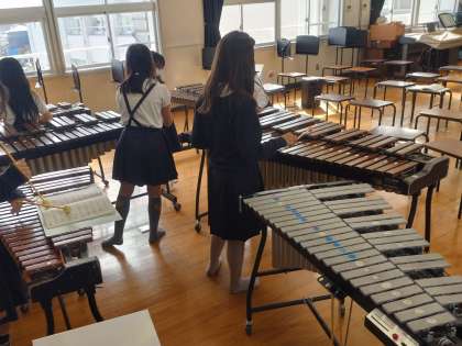 クラスで協力して、一つの曲を完成させます。みんな、とても意欲的に練習していますよ〜!写真は、お昼休みにも音楽室に来て練習している子どもたちの様子です!