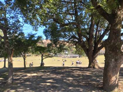 おにごっこをしたり、カモを眺めたり、鹿を観察したり、、、奈良公園を楽しんでいました!