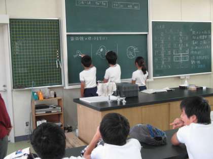本校と今福小の6年生とが、放出中学校を訪問しました。事前に希望したクラブ活動に参加させてもらい、その後、中学校の教室で、国語や数学、音楽などの教科別に1時間、授業を受けさせていただきました。