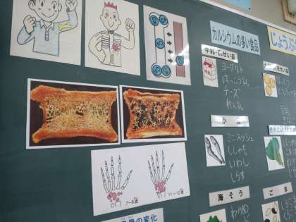 栄養指導の先生が放出小学校に来てくださり、4年生で「丈夫な骨を作ろう」をテーマに授業をして頂きました。