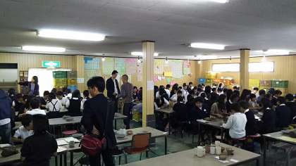 学校を元気よく出発した子どもたち、信楽に到着しました。最初の活動は、信楽焼きの陶芸教室で、お皿やコップを作ります。粘土を前に緊張気味の6年生です。