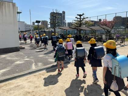 分団別に集まり、登下校の注意点や班のメンバーの確認などをしました。全体でも登下校の注意を聞き、集団下校しました。低学年の子たちに優しくしている高学年の姿がたくさんみられました。