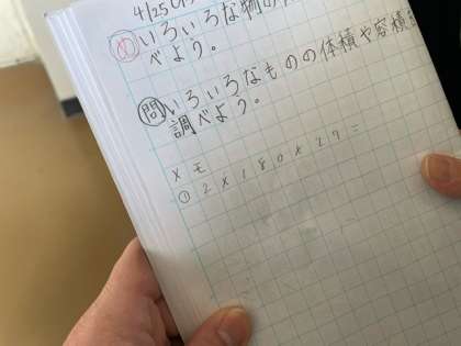 一人一台端末を活用し、写真を撮ったりメモをしたりしながら体積を調べました。