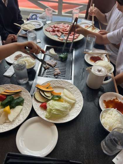 1組もバーベキュー始めました。お腹すいたよねー。