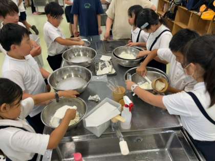 3組のアイスクリーム作りです。くるくるくるくる回して回して、がりがりがりがり剥がして剥がして、出来上がり。