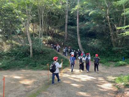 ネイチャービンゴに挑戦中。ここを登って、みんなヤッホーと言っています。音声をお伝えできないのが残念です。