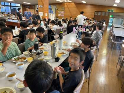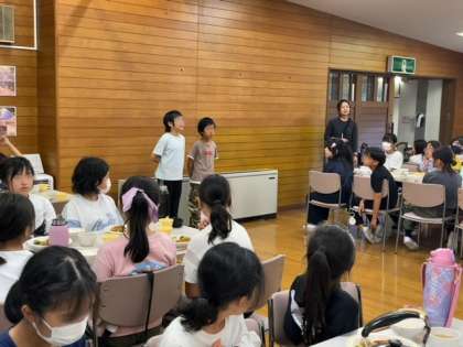 たくさん活動してお腹がすきました。夕飯の時間です。みんなでいただきます!何回もおかわりをしている子もいました。