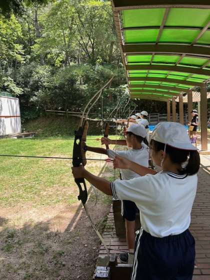1組キーホルダー作り、2組アーチェリー、3組カヌー、それぞれ最後の体験です。どれも楽しみながらも、一生懸命取り組んでいました。