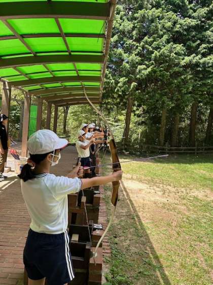 1組キーホルダー作り、2組アーチェリー、3組カヌー