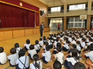 児童朝会では、校長先生から防災のお話がありました。南海トラフ地震についても話題にあがっています。おうちでも、ぜひ防災についてお話ししてみてください。