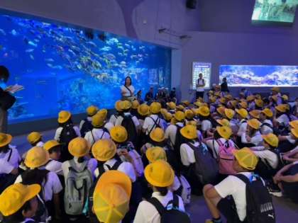 鳥羽水族館に到着しました。グループで立てたプランをもとに行動しています。お腹がすいて、先にご飯を食べているグループが多いです。