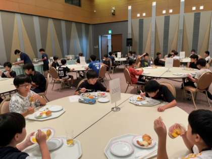 散歩の後は、朝食です。バランスも考えながら、好きなおかずをとって、食べていました。その後、お部屋の片付けをして、ホテルを出発しました。