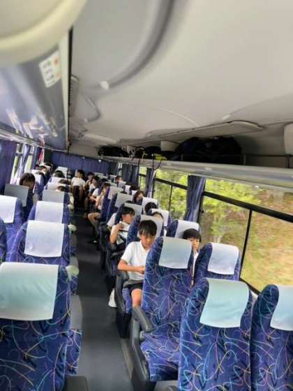 スペイン村をあとにし、学校に向けて出発しました。「さようならピレネー」と、バスの中で言っていました。