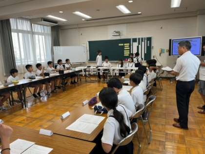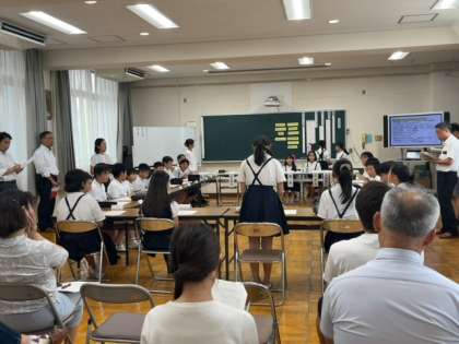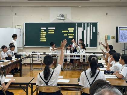 児童会活動の全市に向けた公開授業を、放出小学校で行いました。たくさんの先生が見ている中、50周年のお祝い集会ですることについて、活発に意見を出し、話し合うことができました。