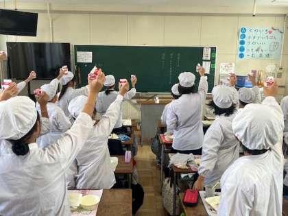 給食委員会の合図で、一斉に『カンパーイ!』という声が、学校中に響きわたりました。