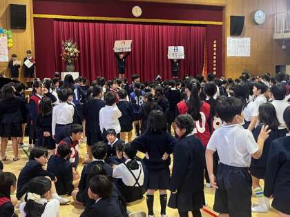 ?11月16日(土)は、パーティーの日でした。講堂で、全校児童みんなで学校の歴史クイズをしたり、歌ったり、お祝いの言葉をつないだりしてお祝いしました。スライドで学校生活を振り返ったりもして、笑顔いっぱいの、思い出に残る、楽しいバースデーパーティーでした。