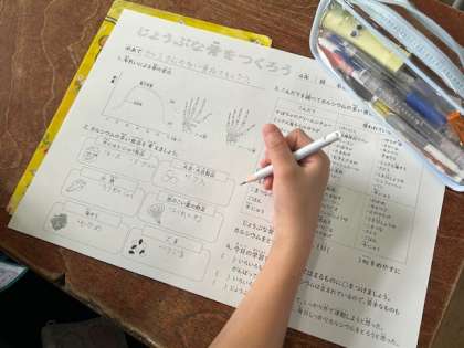 カルシウムは、給食によく出るメニューや、牛乳にも入っていることなど、さらには骨もカルシウムだということを初めて知りました。他にも、野菜や海藻にもカルシウムが入っていることを学びました。