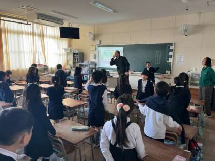 1年生が、C-NETの先生と一緒に英語の活動をしました。先生の英語やジェスチャーで、何を言っているのかなと考えて、お話していました。体を動かして歌ったり踊ったりもしました。