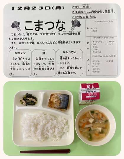 ※ 今日は2学期最後の給食です。給食調理員さん、いつも美味しい給食をありがとうございました。