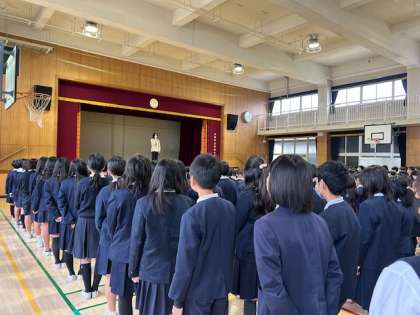 今日の児童朝会は、月に一度の対面開催の日でした。