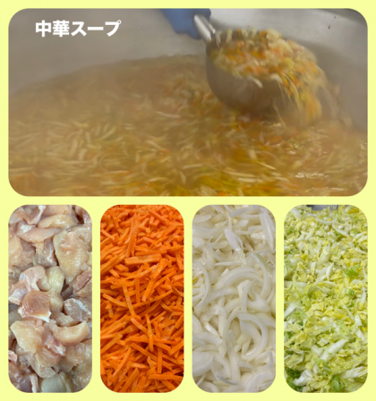 「中華スープ」は、鶏肉、たまねぎ、はくさい、にんじんを使用しています。