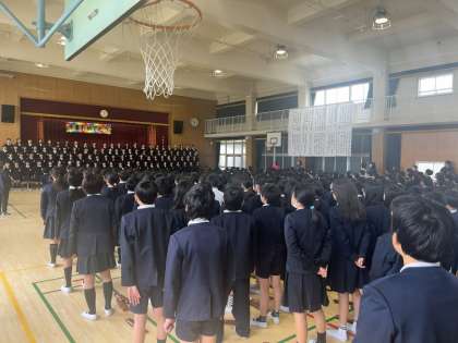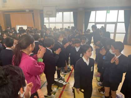 最後に全校合唱として、みんなで一緒に歌を歌いました。6年生の卒業を寂しく感じ、泣いてしまった児童もいました。6年生は、下の学年の子どもたちと一緒に遊んだり、お世話をしたりと、高学年として立派に行動していたので、それを思い出して泣いていたのでしょうね。最後は笑顔でお見送りしました。