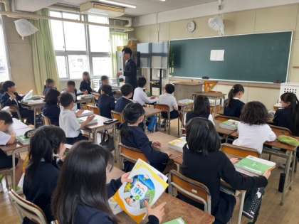 新しい担任の先生から、お話があったり、手紙や教科書の説明があったりしました。新しい学年で、少し緊張していましたが、休み時間には元気に外で遊んでいました。