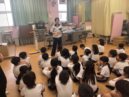 発育測定を、各学年順次行っています。保健室の先生に体やけがのお話を聞いたあと、身長と体重を測りました。4月から5月にかけて、たくさんの検診が実施されます。