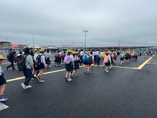 万博会場に到着しました。途中、海遊館やUSJを見て、大興奮でした。雨もあがりました。